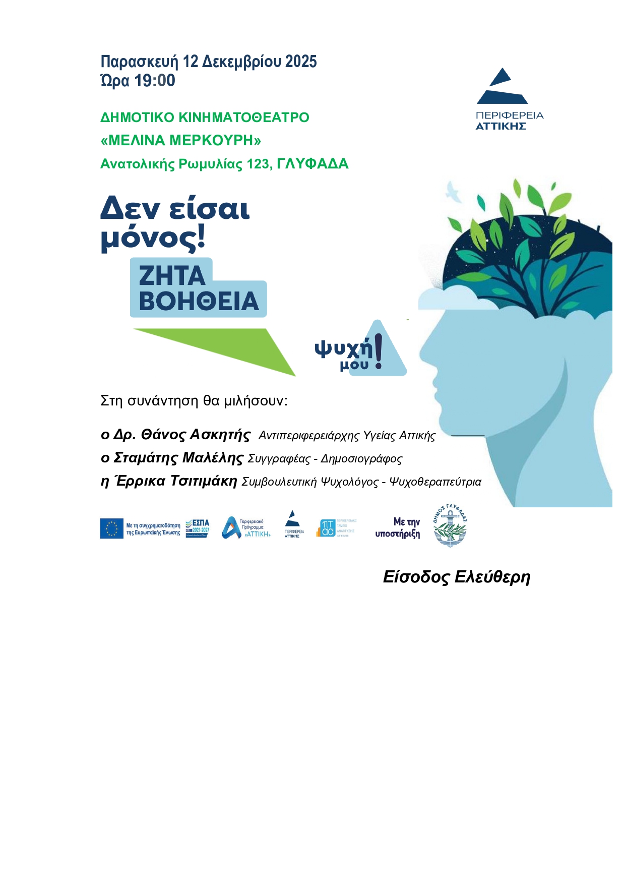 Τη Παρασκευή 12 Δεκεμβρίου στη Γλυφάδα η ενημερωτική ημερίδα της Περιφέρειας Αττικής για τη κατάθλιψη